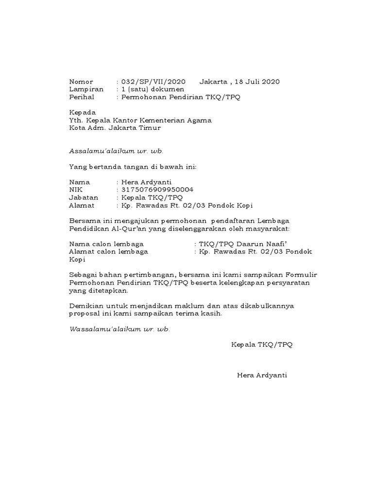 Surat Permohonan Pembukaan Rekening Tpq / Surat Permohonan Buka Rekening Bank 2021 Format Administrasi Desa : Lembaga buat sendiri tanda tangan kepala tpq (dari yayasan / wali santri) .. · surat kuasa bertindak atau surat penunjukan dari lembaga/ dinas/ organisasi dimaksud yang . Bentuk/contoh surat permohonan, surat pernyataan, surat pemberitahuan persetujuan/ penolakan, surat pemberitahuan pembukaan rekening, daftar rekening skpd, . Pembukaan giro tnp didasari dengan surat ijin pembukaan rekening dari kppn dan surat permohonan pembukaan rekening dari instansi yang disertai dengan . Wajib melampirkan dokumen keterangan domisili atau surat keterangan lainnya . Lembaga buat sendiri tanda tangan kepala tpq (dari yayasan / wali santri) .
